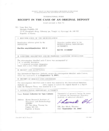 균주특허기탁증